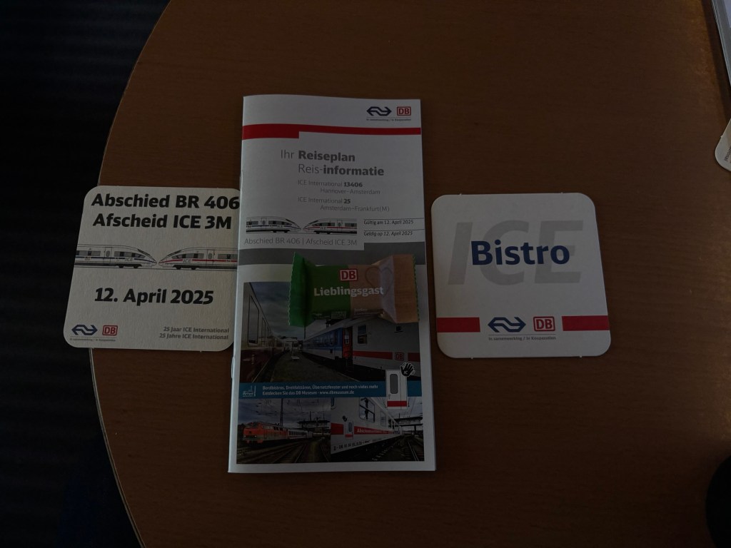 Okay, fangen wir vorne an: Ich hab diese Fahrt nicht organisiert – ich war einfach dabei und will euch hier ein bisschen was darüber erzählen. Es geht um die große Abschiedsfahrt der Baureihe 406, also dem ICE 3M. Anlass: 25 Jahre ICE International. Gefahren wurde zwischen Hannover Messe/Laatzen und Amsterdam Centraal. Und wer sich ein bisschen auskennt, merkt schon: Moment mal – das kommt mir doch bekannt vor…